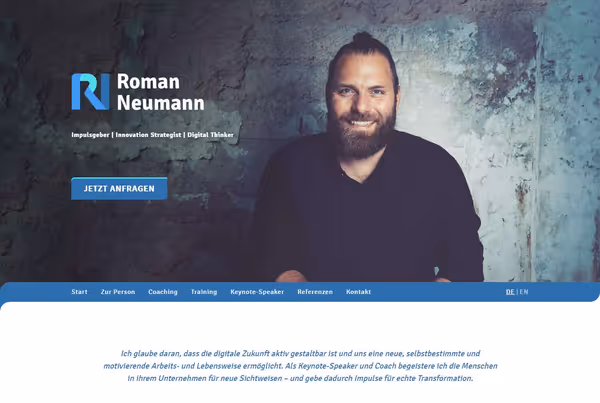 In creative co-work with Roman, I conceived a Website for his profession as Coach, Trainer and Speaker. His focus lies in Entrepreneurship, Innovation Strategy and thinking through the effects, this digital world has on our minds and life.